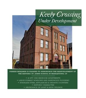 St. John’s Parochial School is a 3½-story Victorian institutional building constructed in 1887. The building is composed of load-bearing red brick masonry with a cut brownstone foundation and capped with a slate roof. Character-defining exterior features include a one-story arched brick and brownstone entry porch, carved brownstone window lintels and sills, and a raised central gable with cross that replaced an original belfry. Windows are set in arched openings with brownstone trim.Interior features include wide double-loaded corridors, fluted moldings, rosettes, and pressed tin ceilings in many rooms. The building retains its original sixteen-classroom layout, which aligns with the proposed residential unit configuration. The building is located on the western edge of St. John’s Square and remains connected to the adjacent St. John’s Church by a historic brownstone archway. It retains high architectural integrity in materials, design, and setting.